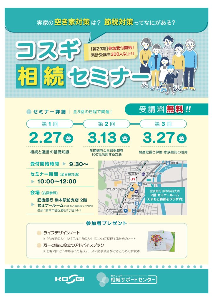 【熊本コスギ相続サポートセンター】より、相続セミナー開催のお知らせです。